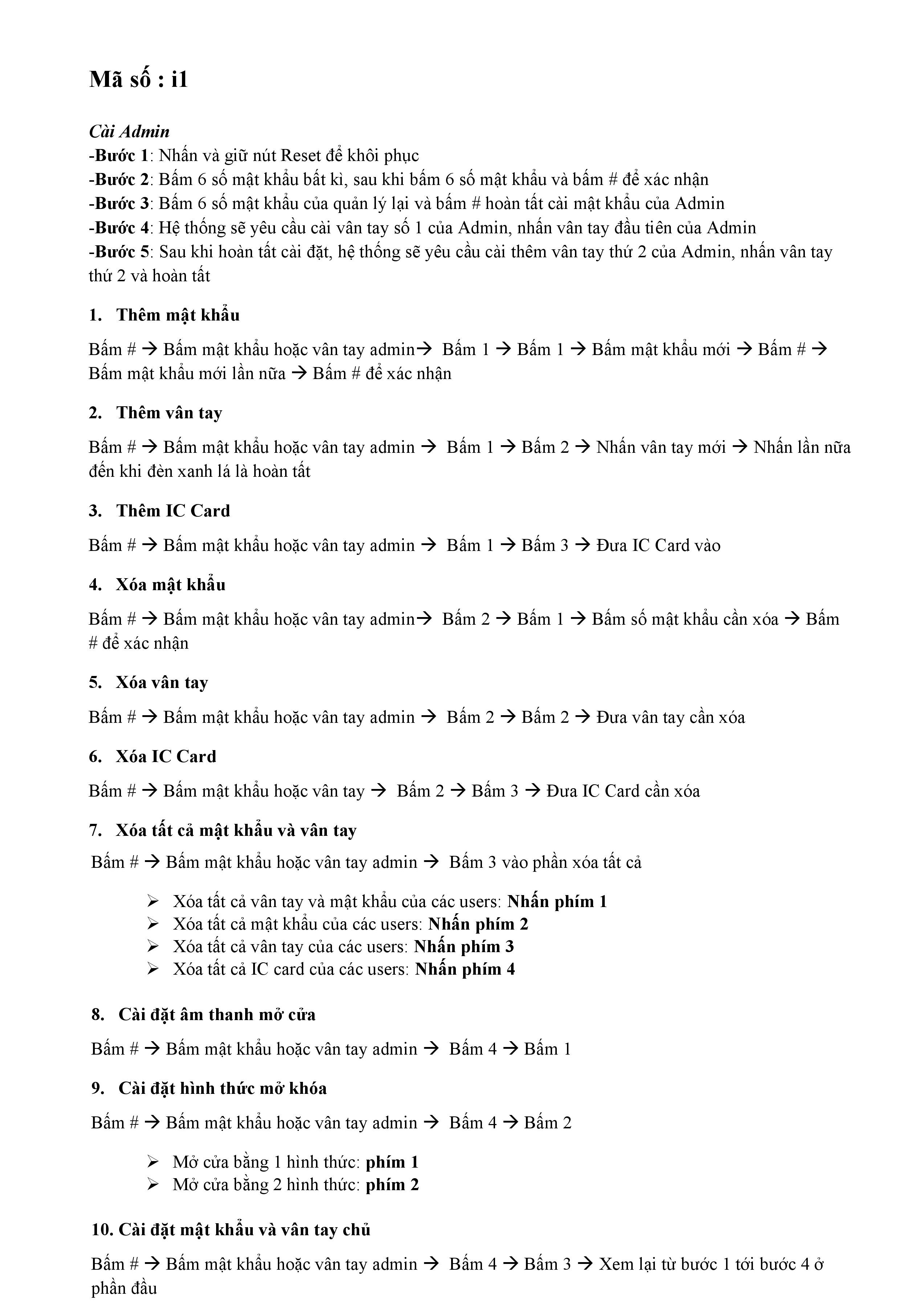 Hướng dẫn sử dụng Khóa cửa điện tử vân tay thông minh i1