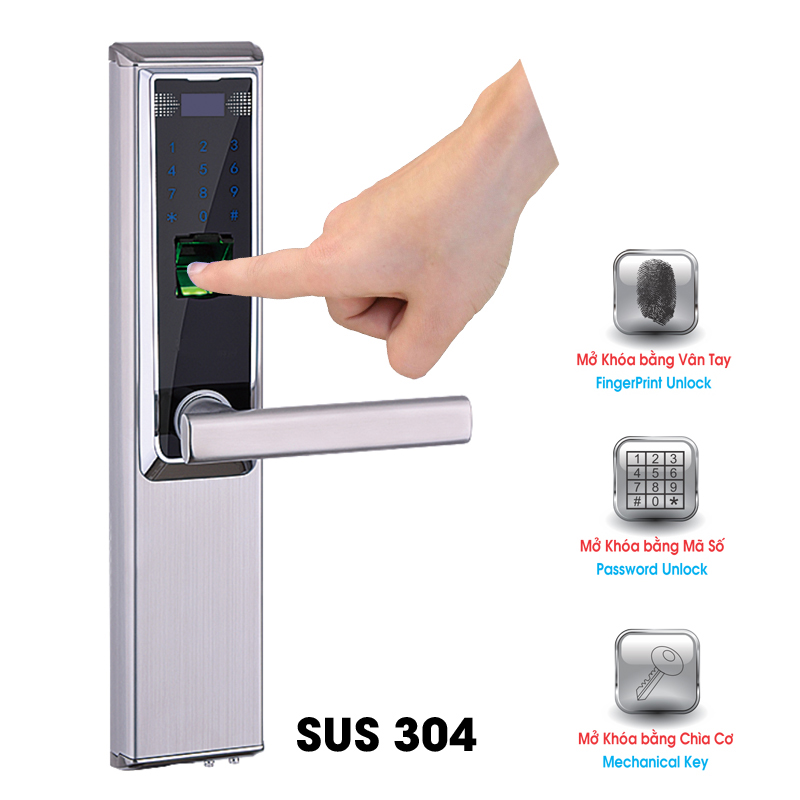 Khóa Vân Tay Đức 3 Chức Năng Inox 304 H918-60F Trắng NEWNEO